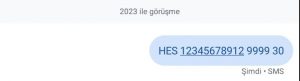 Örnek: HES 12345678912 9999 30 yaz 2023’e SMS olarak gönder.